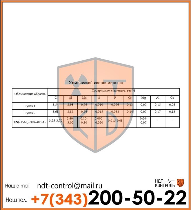 Лаборатория неразрушающего контроля «НДТ-контроль» проводит эффективный анализ состава металла в Лабытнангах. Предприятие располагает всем необходимым для высокоточного определения химического состава, количественного содержания и качественных свойств веществ, примесей и элементов, содержащихся в металлических сплавах и сталях. Эксперты компании гарантируют полный контроль над качеством металлических изделий, а также детальную экспертизу состава металла. Диагностика методами неразрушающего контроля позволяет не только вынести заключение о качестве, составе и свойствах металлов, но выявить причины появления дефектов или неисправностей на металлических конструкциях и изделиях из стали. Узнать подробную информацию о методах НК, стоимость анализа химического состава металлов, а также перечень услуг, предоставляемых лабораторией «НДТ-контроль» можно узнать на сайте, или у консультантов компании по указанным в разделе «Контакты» телефонам.